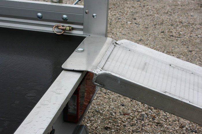 - Aluminium-Auffahrrampen mit griffiger Lauffläche und seitlichen Schutzrand