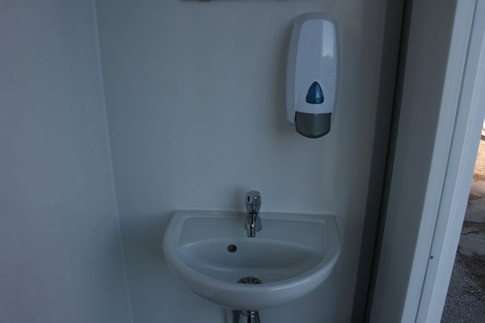 - Das Damen- und Herrenabteil sind mit qualitativ hochwertiger weißer Badkeramik ausgestattet. Jedes Abteil ist mit einem großzügigen Waschraum mit Porzellan- Waschbecken, Wasserhahn für Kaltwasser, einem Spiegel, verschiedenen Hygiene- Spendern (abschließbar) und einem Abfalleimer ausgestattet