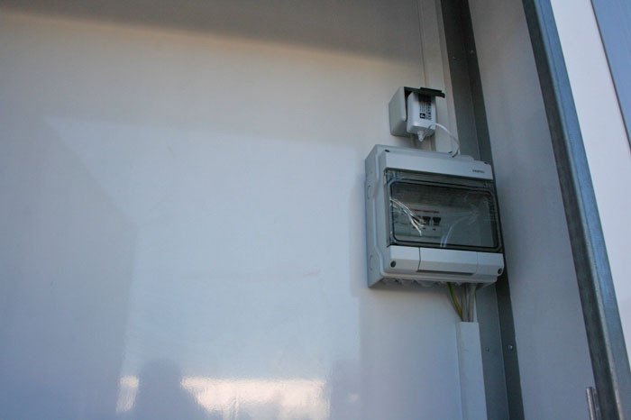 - Die Elektroinstallation sind nach IP 65 für Feuchträume gesichert. Die Schalter und der Sicherungskasten befinden sich in der abschließbaren Servicebox