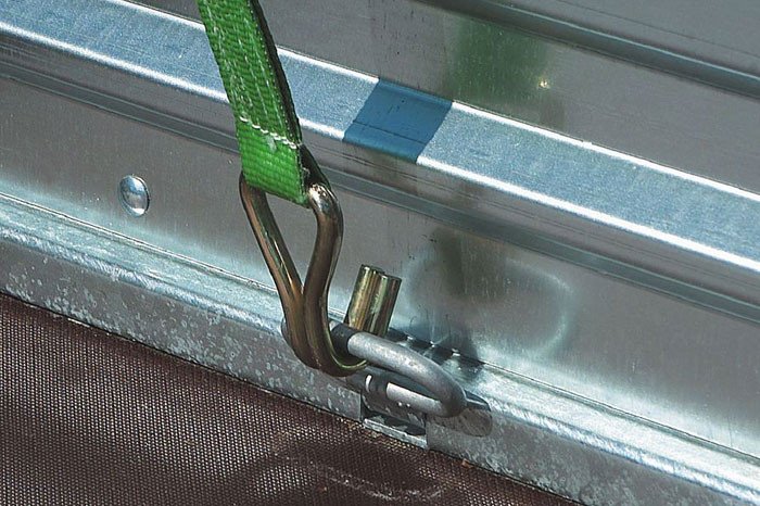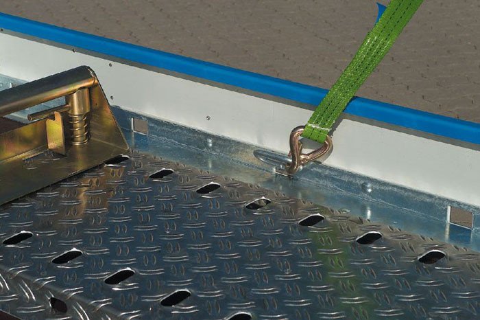 Gemäß der nach DIN 75410-1 vorgeschriebenen Anzahl an Zurrpunkten liefern wir je nach Länge des Fahrzeuges die gleiche Stückzahl Gurthaken serienmäßig mit. Weitere Gurthaken können als Zubehör nachbestellt werden.
