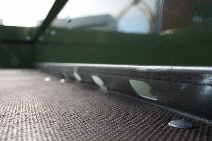 Die Ladungssicherung ist optimal direkt mit dem Rahmen verschraubt. Es kann über die gesamte Anhängerlänge eine Anbindung mittels Zurrgurten stattfinden.