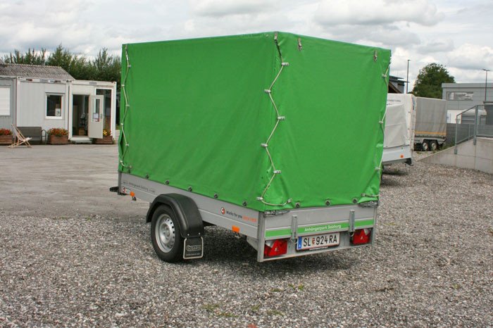 Praktischer Planenanhänger DV75 mit Hochplane grün