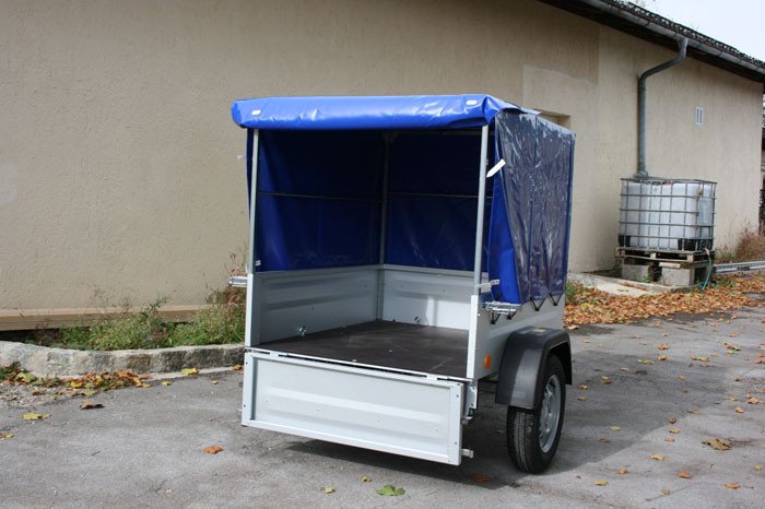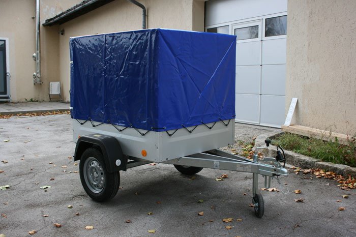 Kompakter PKW Anhänger, Autoanhänger mit wenig Platzbedarf und doch einem ansprechenden Ladevolumen durch das Planendach mit einer Innenhöhe von 112 cm