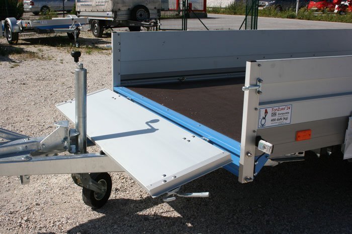 Stützrad, Befahrbare Auffahrklappe, Gasfederunterstützen beim kippen, Flachplane, Spriegel mit Plane, Bordwandaufsätze, Laubgitterwände, Auffahrrampen und vieles mehr