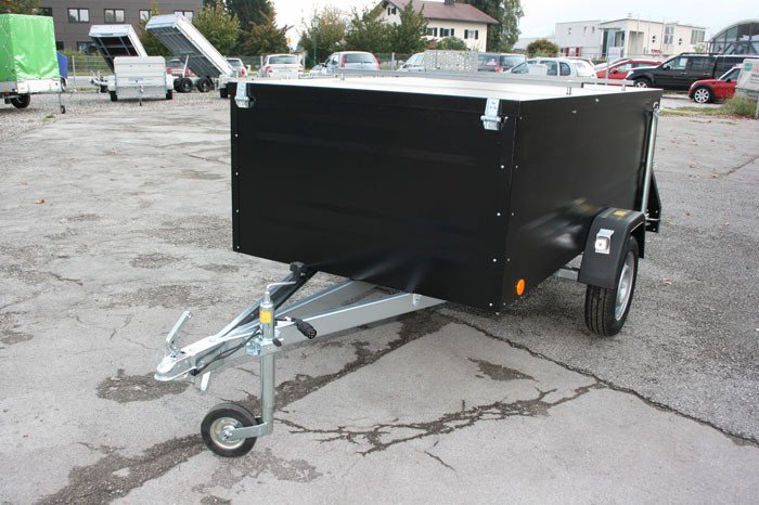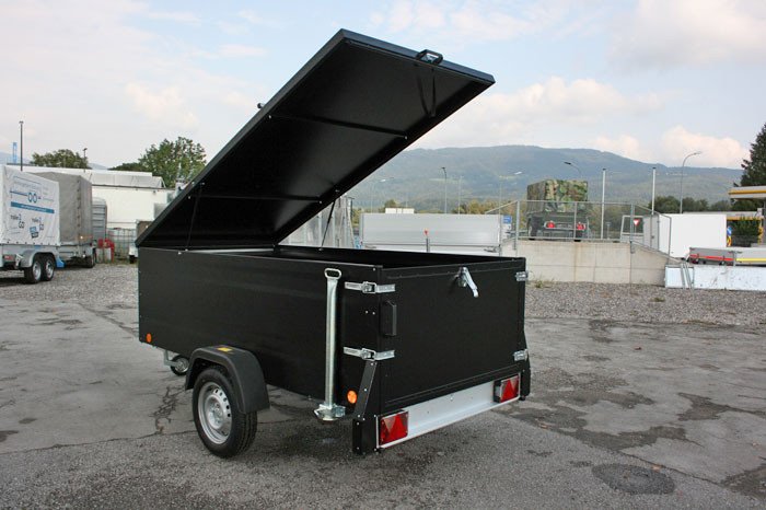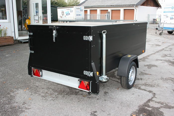 Geschlossener Anhänger mit Deckel TPV KT-EU3 gegen Aufpreis schwarz beschichtet, gasfederunterstützter Deckel mit Dachträger