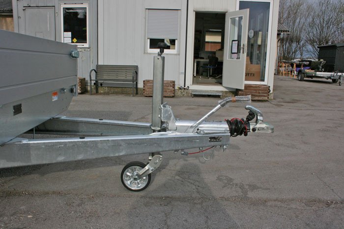 Automatik Stützrad ø 60 mm auf Deichsel montiert, für ein sicheres Abstellen und Rangieren des Anhängers