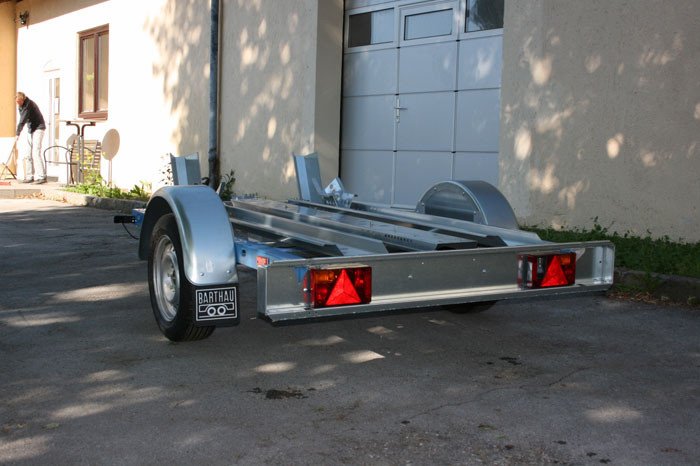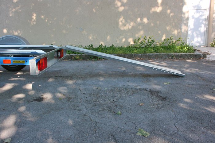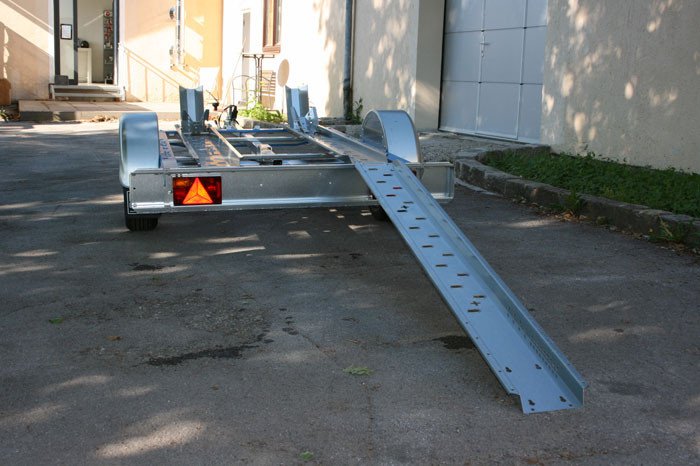 Motorradanhänger für 1 oder 2 Motorräder mit der einstellbaren Wippe für das Vorderrad ist auch die Verladung alleine möglich