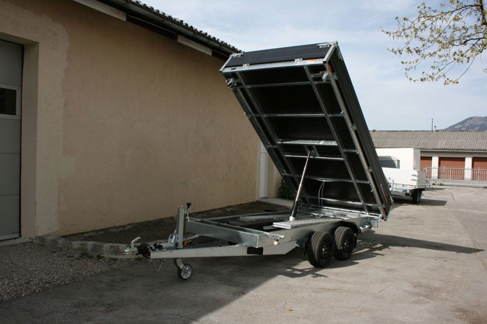 PKW Anhänger Dreiseitenkipper Kipphydraulik elektrisch Nothandpumpe, Verladerampen in Schacht, Heckstützen, Black Edition