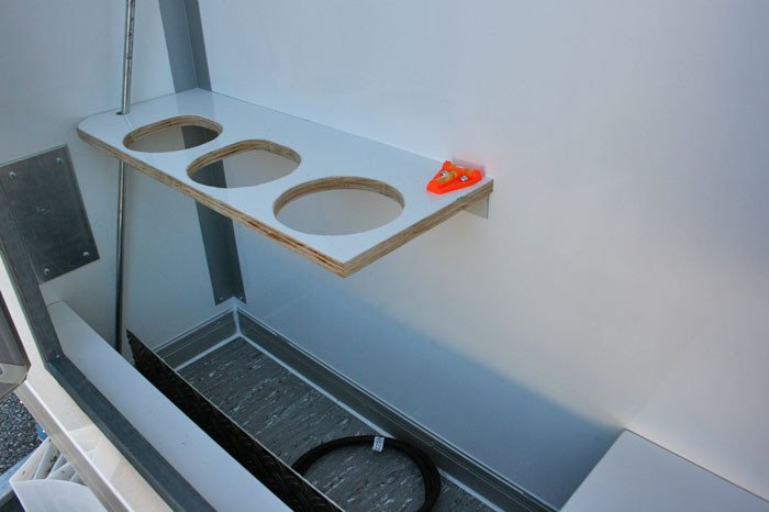 Der Aufbau ist vollkommen verklebt aus Multiplex Platten kunststoffbeschichtet eingefasst in eloxierten Aluminiumprofilen