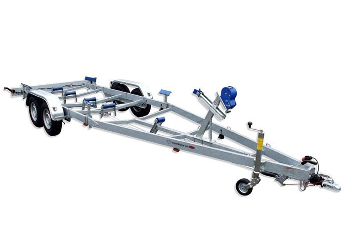 Gebremster Bootsanhänger mit Langauflagen und Doppelrollen