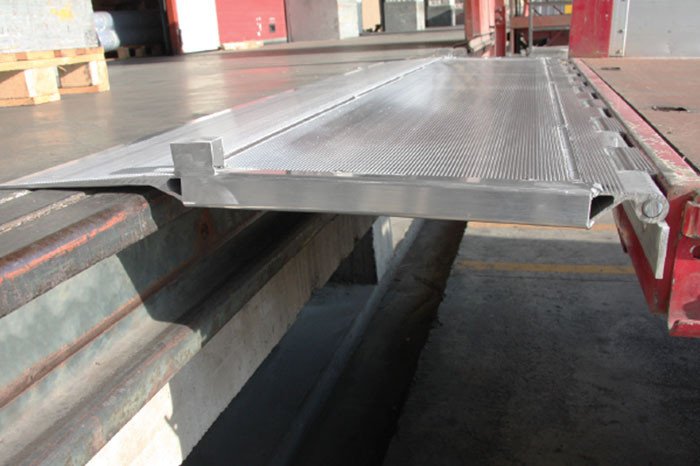 Unsere Ladebordwände werden aus stabilen Aluminium Strangpressprofilen mit geriffelter rutschfester Oberfläche hergestellt. Die Ladebordwände bieten die Möglichkeit des sicheren Be- und Entladens von Gütern mithilfe von elektrischen Hubwagen und Gabelstaplern.