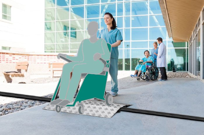 Bequemes Überwinden kleinerer Hindernisse am Boden wie z.B.Türschwellen, Leitungen oder Kabel bis zu 150 kg belastbar
