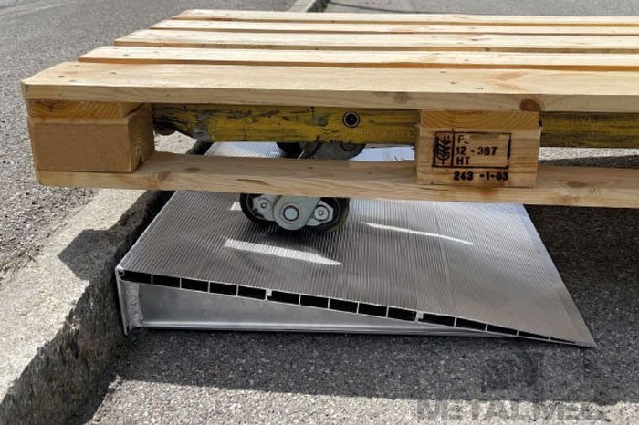 Keilförmige Zugangsrampen aus Aluminiumprofilen bis 1.000 kg Tragkraft