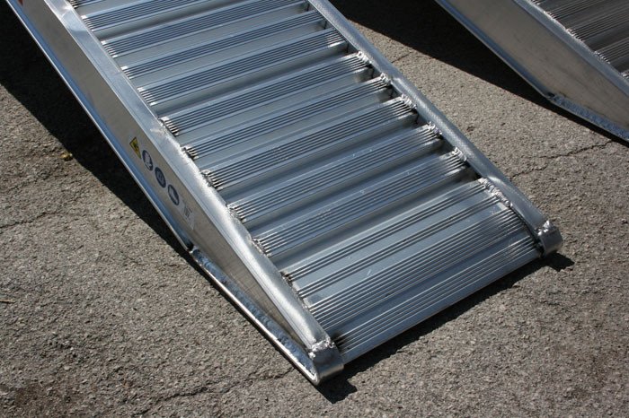 Durch das spezielle Alu Profil sind diese Auffahrschienen rutschhemmend und für viele Einsatzzwecke geeignet, wie z.B. das Verladen von Baggern mit Gummiketten, Fahrzeuge, Quads und Aufsitz - Rasenmäher.