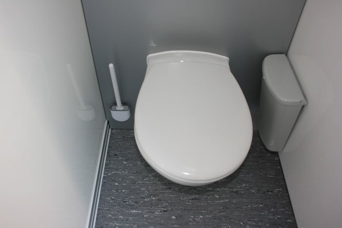• Das Damen- und Herrenabteil sind mit qualitativ hochwertiger weißer Badkeramik ausgestattet. Jedes Abteil ist mit einem großzügigen Waschraum mit Porzellan- Waschbecken, Wasserhahn für Kaltwasser, einem Spiegel, verschiedenen Hygiene- Spendern (abschließbar) und einem Abfalleimer ausgestattet