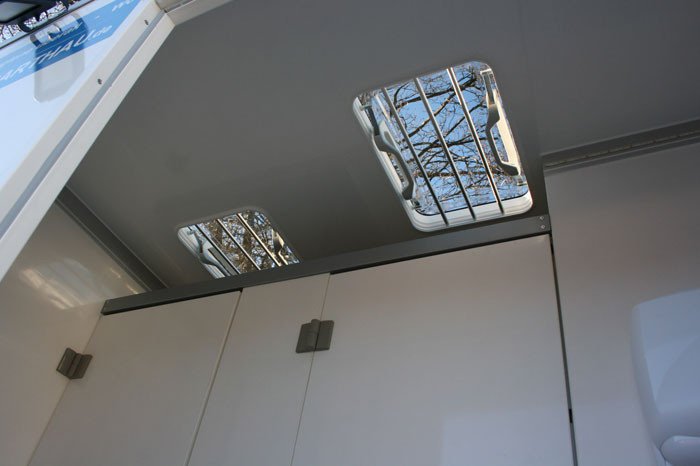 Auch als Leeranhänger mit 2 Außentüren mit Klapptritt, Dachluken, ohne PVC-Boden, ohne Mitteltrennwand, ohne Stauboxabtrennung und Stauboxtüren, ohne Kabinen und Zubehör