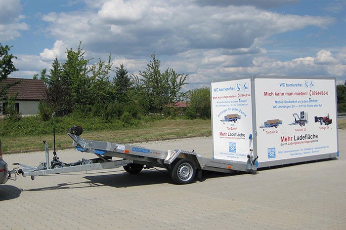 - Barthau WC-Container mit barierefreiem, rollstuhlgerechtem Zugang mit extra breiter Türe und flachem Auffahrwinkel