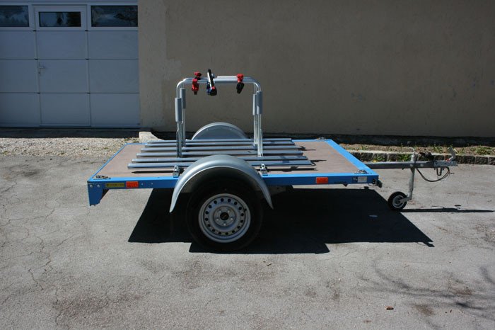 Unser Fahrradanhänger ist mit robusten Fiamma-Haltearmen und strapazierfähigen Textilspanngurten ausgestattet. So bleibt jedes Bike stabil fixiert – selbst auf längeren Strecken. Für optimale Beladung werden die Fahrräder versetzt platziert, kleinere Räder gehören nach außen.