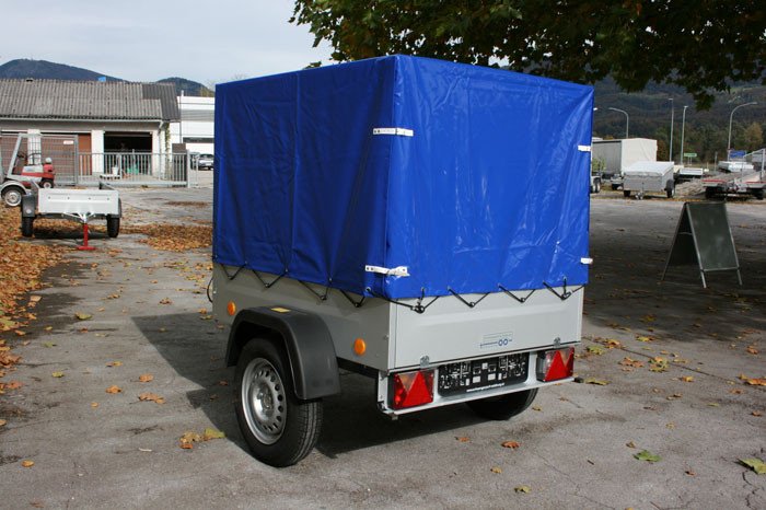 Kompakter PKW Anhänger, Autoanhänger mit wenig Platzbedarf und doch einem ansprechenden Ladevolumen durch das Planendach mit einer Innenhöhe von 112 cm