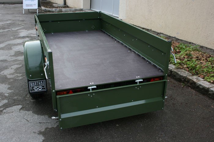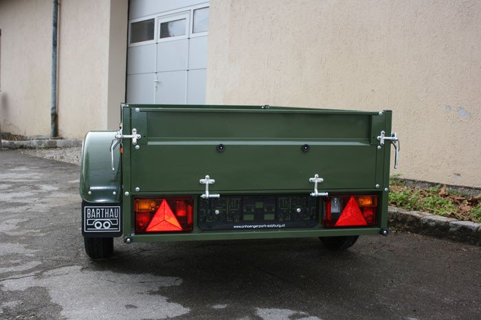 Ein optisches Highlight ist der KFZ Anhänger, Autoanhänger in Olivgrün mit den dazupassenden Kotflügeln, er ist ein unbedingtes Muss für jeden Anhängerbesitzer der etwas besonderes wünscht, der Anhänger ist auch in Feuerwehrrot oder Himmelblau erhältlich