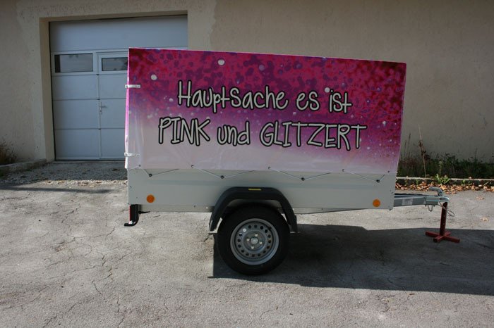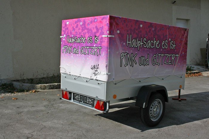 Mit dem stylischen PKW Anhänger, Autoanhänger mit einer pinken Hochplane mit 112 cm sind den einfachen Transportbedürfnissen keine Grenzen mehr gesetzt