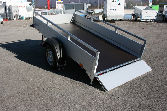 Besonder geeignet ist die kippbare Ladefläche für den transport für Fahrzeugen mit kleinerer Bereifung wie Rasenmäher, Schneefräsen oder sonstigen kommunale Geräten und Maschinen