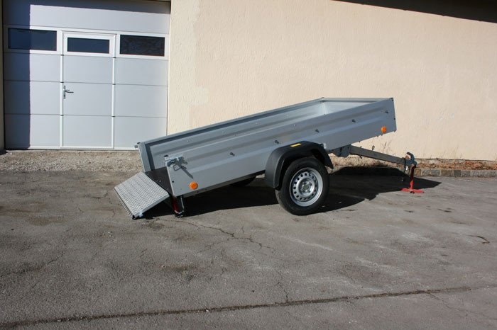 Ungebremster Anhänger mit kippbarer Ladefläche und befahrbarer Klappe