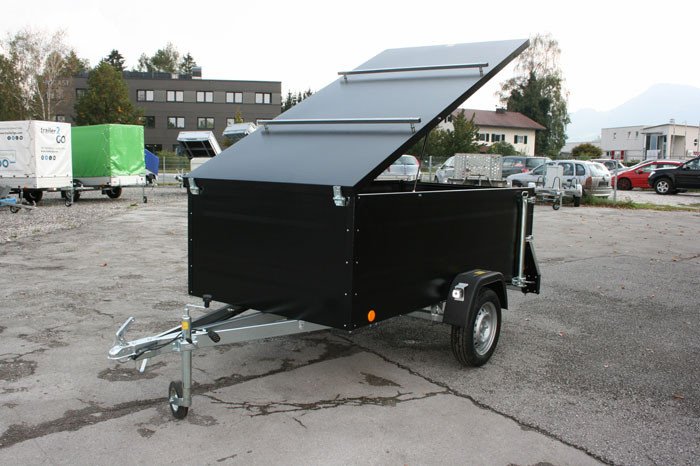 Geschlossener Anhänger mit Deckel TPV KT-EU3 gegen Aufpreis schwarz beschichtet, gasfederunterstützter Deckel mit Dachträger