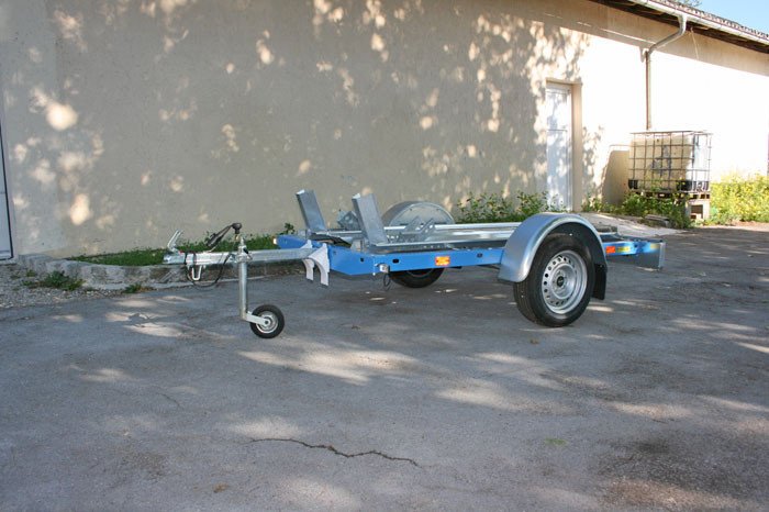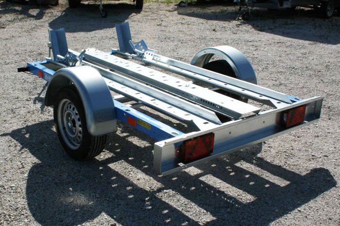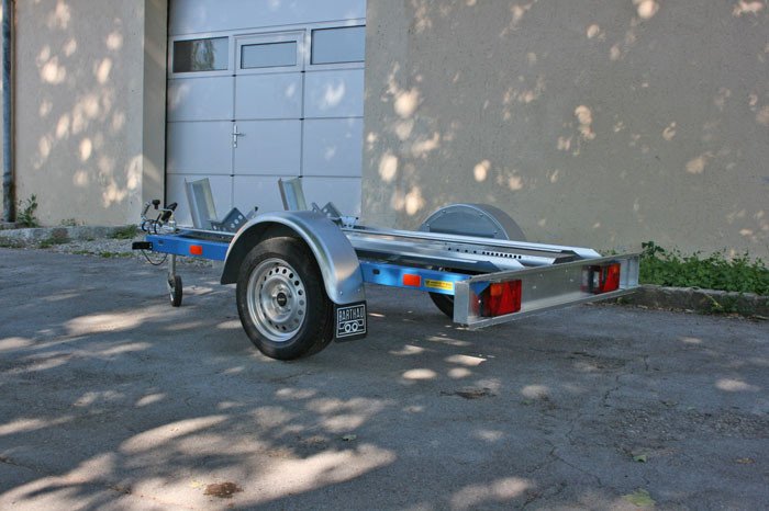 Motorradanhänger für 1 oder 2 Motorräder mit der einstellbaren Wippe für das Vorderrad ist auch die Verladung alleine möglich