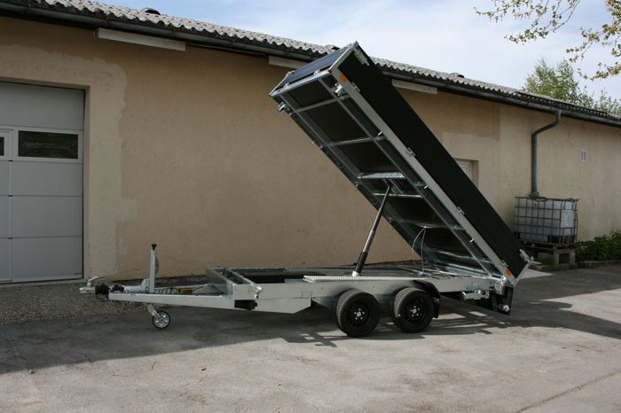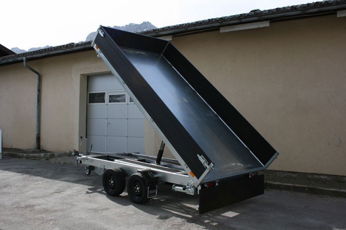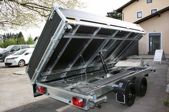 PKW Anhänger Dreiseitenkipper Kipphydraulik elektrisch Nothandpumpe, Verladerampen in Schacht, Heckstützen, Black Edition