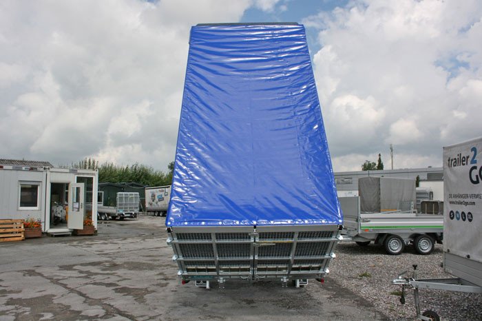 Flachplane, feinmaschiges Netz, Bordwandaufsätze, Laubgitterwände, Stauboxen, Stoßdämpfer, Schaufelablage, Seilwinde