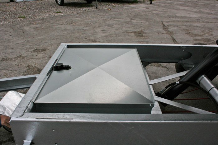 Aluminium Boden verklebt und genietet auf einer mehrfach verleimten Multiplex-Siebdruckplatte