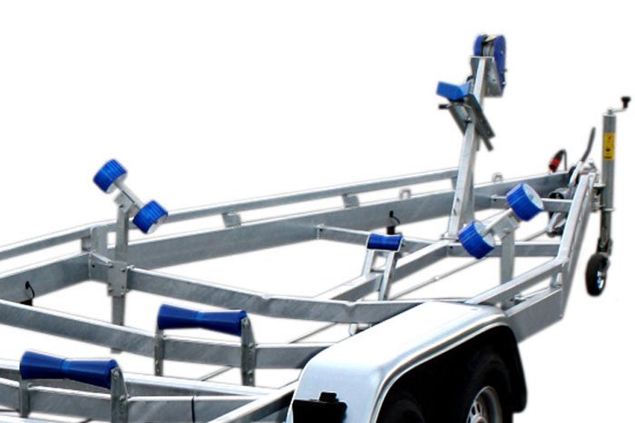 Tandem Bootsanhänger mit Vierfachrollen und Kurbelstützen