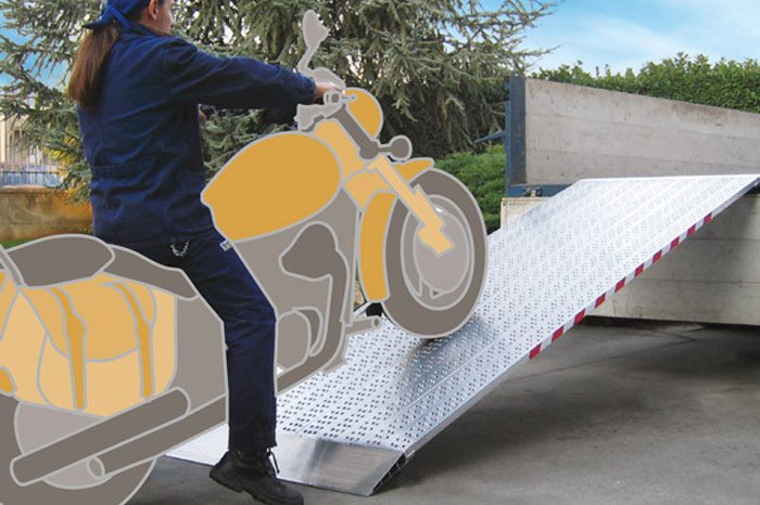 Die Rampen werden ohne seitliche Ränder gefertigt und inklusive Verankerungslaschen geliefert. Zur leichteren Handhabung kann eine klappbare Scharnierausführung gewählt werden. Auf Wunsch ist auch eine Ausführung mit dem Endstück Typ C040F erhältlich, das eine durchgehende Verbindung zwischen Rampe und Arbeitsfläche ermöglicht.