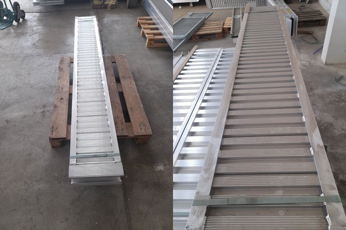 Durch das spezielle Alu Profil sind diese Auffahrschienen rutschhemmend und für viele Einsatzzwecke geeignet, wie z.B. das Verladen von Baggern mit Gummiketten, Fahrzeuge, Quads und Aufsitz - Rasenmäher.